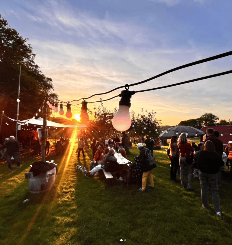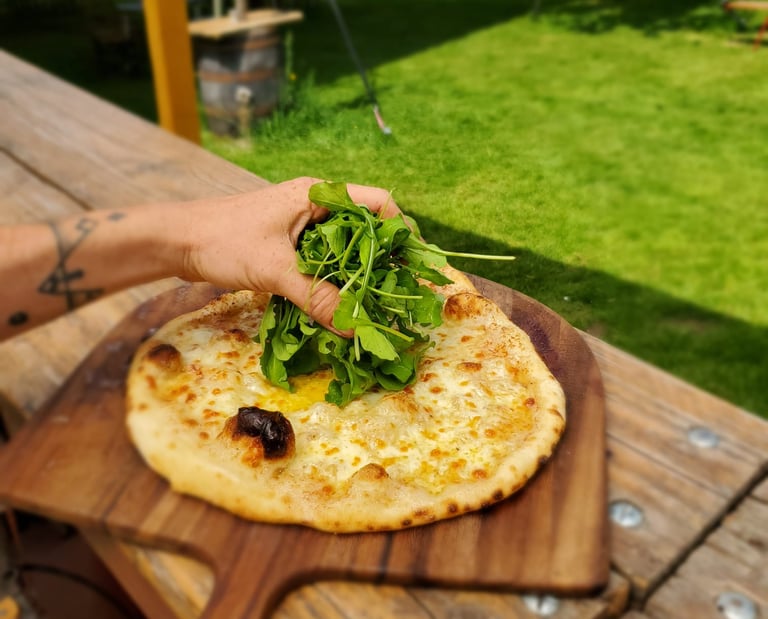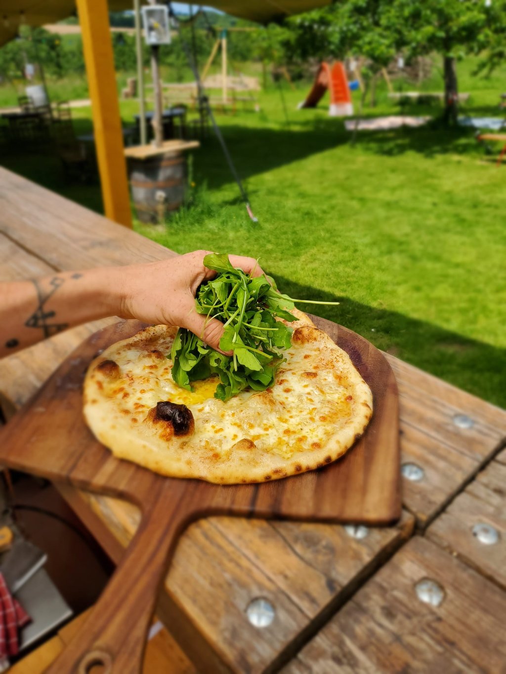 Savourez des pizzas faites à la main et des bières artisanales dans le cadre magnifique de notre verger.